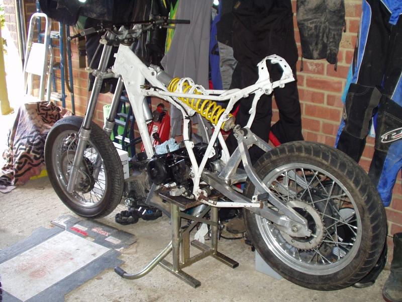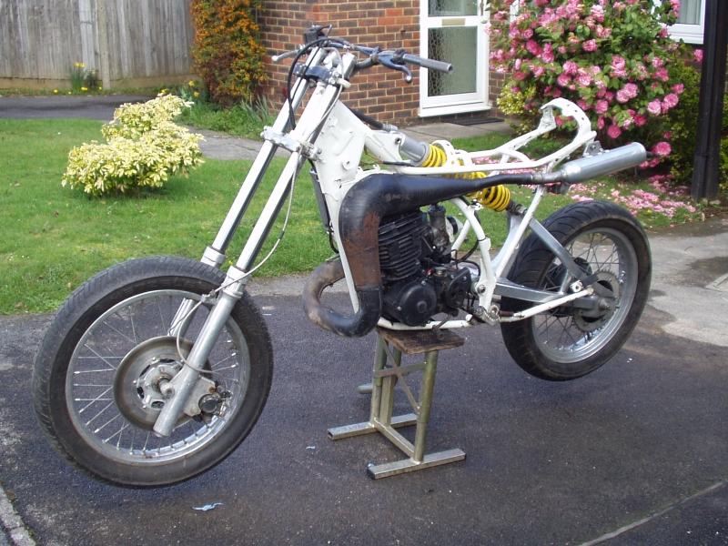 I bought the bike of eBay and paid £250, it was a proper old nail. Someone had TIG welded a lump of billet ally to the original for leg to badly convert it from a TLS drum to a disc brake setup. The 18" front wheel it was wearing came off an unknown Jap bike and was soon put in the bin.